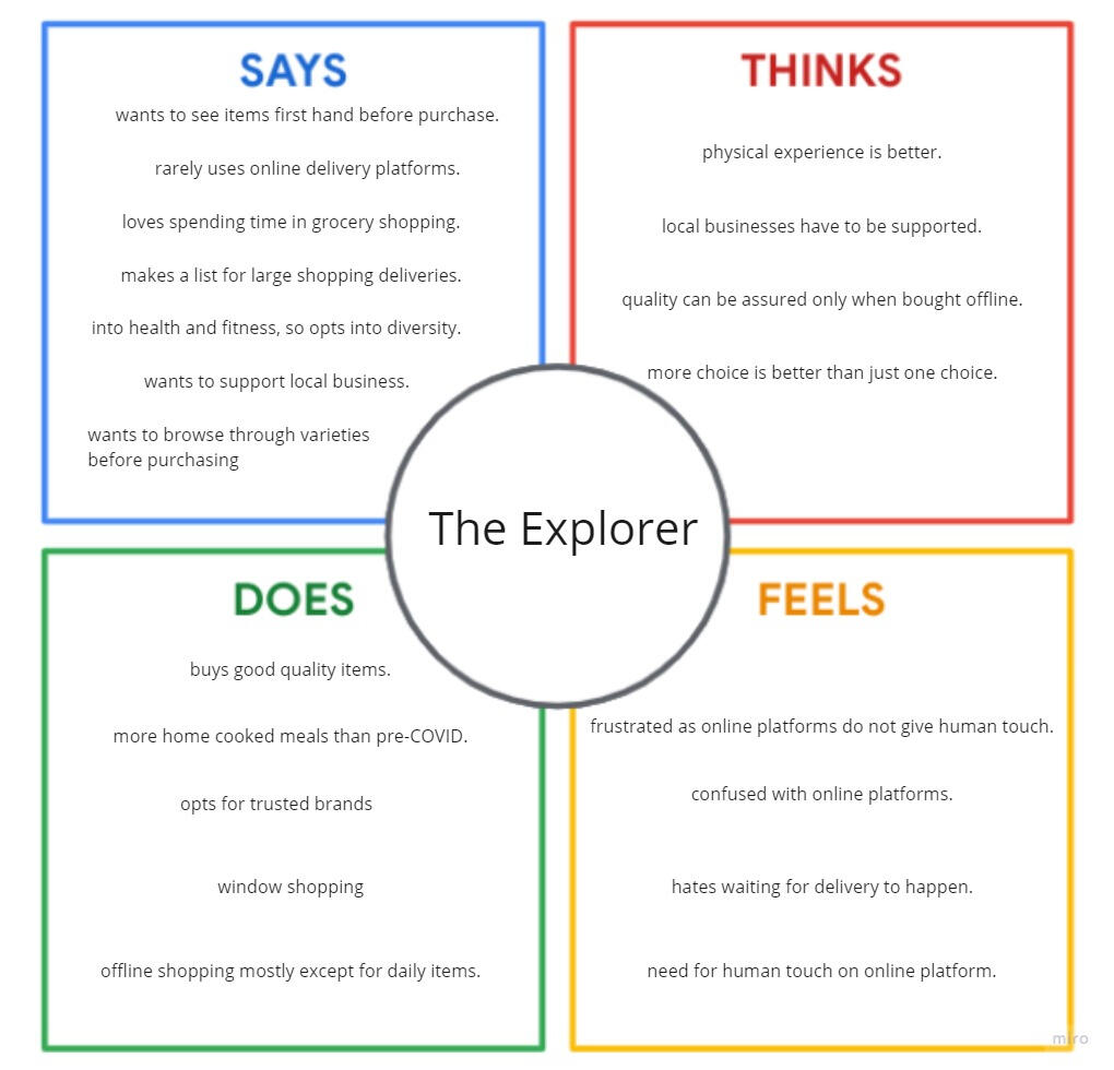 After interviews, I created empathy maps to understand the users I’m designing for and their needs. I was able to arrive at forming user sets.To understand each user set further, we draw upon what each user set says, thinks, does and feels. This is what is referred to as Empathy mapping, and is illustrated below:• The Explorer — someone who is all about exploration.