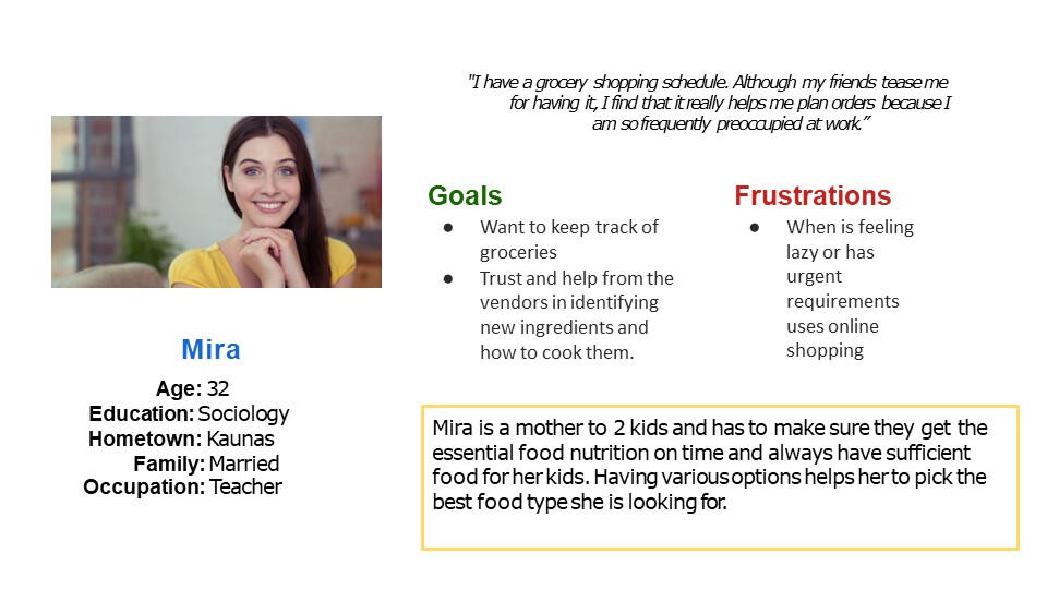 • Reminder system to let users know days before upcoming grocery shopping.How Might We make help users find items and categories easily?• Cleaner and simpler UI.